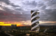 33 Niveles de Departamentos, cada nivel, cuenta con tres departamentos rectangulares, que se disponen radialmente, a manera de hélice. 93 en total y 329 cajones de estacionamiento.