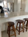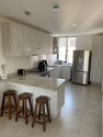 Cocina equipada con refrigerador, estufa, horno, tostador, cafetera, licuadora, tetera, airfryer, vajilla para 6 personas